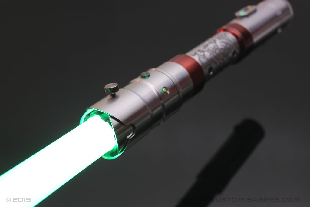 This custom saber is intended to have a simple profile, but a detailed “jewelry box” quality to the construction. It was a challenge to build such delicate detail and still have the saber duel worthy.