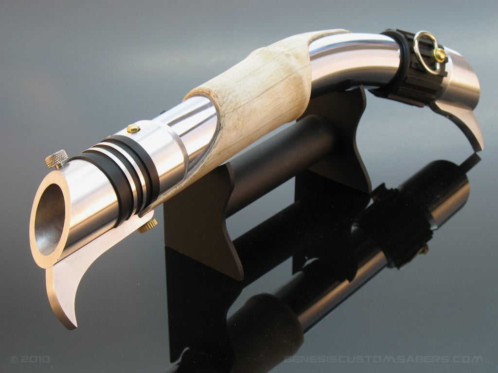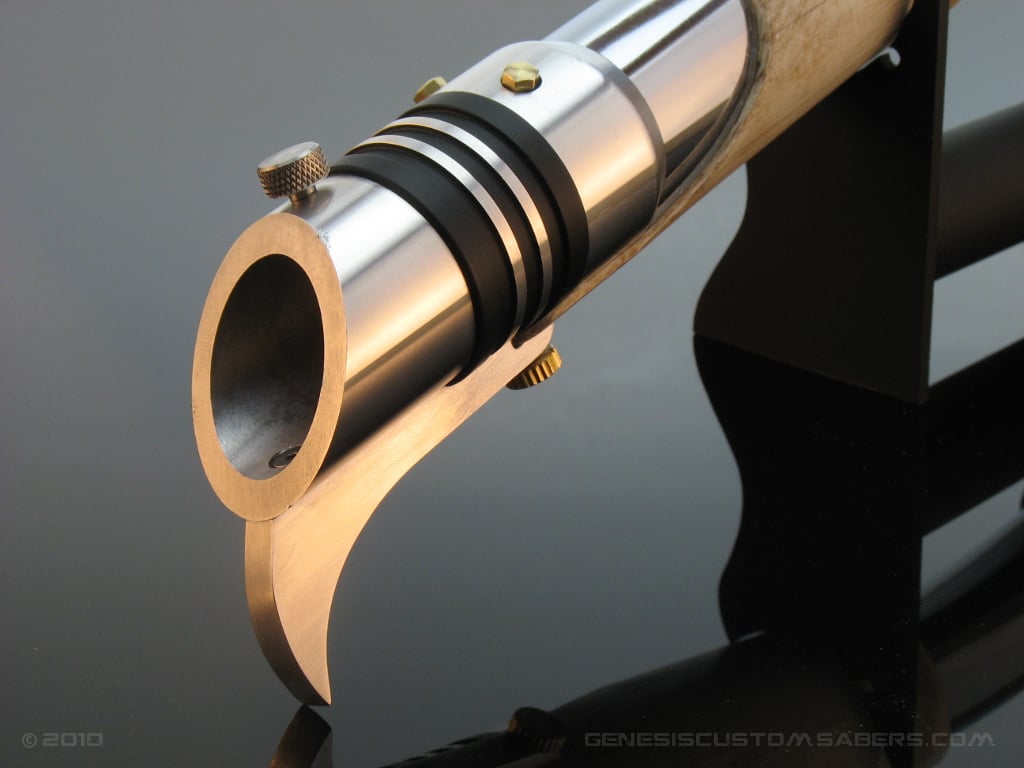 I’m not into the SW graphic novels at all, so my knowledge of Darth Bane comes from the brilliant writing of Drew Karpyshyn. For those who have read his novels, you will know that Darth Bane was given a special curved or “hooked” lightsaber by his Master on Korriban. This lightsaber fit Bane’s physically imposing style of fighting. Therefore it has always irritated me that the common Bane lightsaber showing up among saber enthusiasts was a straight saber hilt (as seen in the comics). This became my cause; to bring Darth Bane’s lightsaber to life, in keeping with Drew Karpyshyn’s vision.