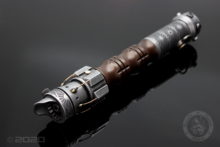 What evolved from the Proto Saber? What did the next phase of saber look like. These questions drove the vision for this Old Relic of a lightsaber design. I used armoured wires and pommel protrusions to set it apart from the Creed base design, and acid etched a pattern that I thought was reminiscent of holocron artwork or ancient temples.
