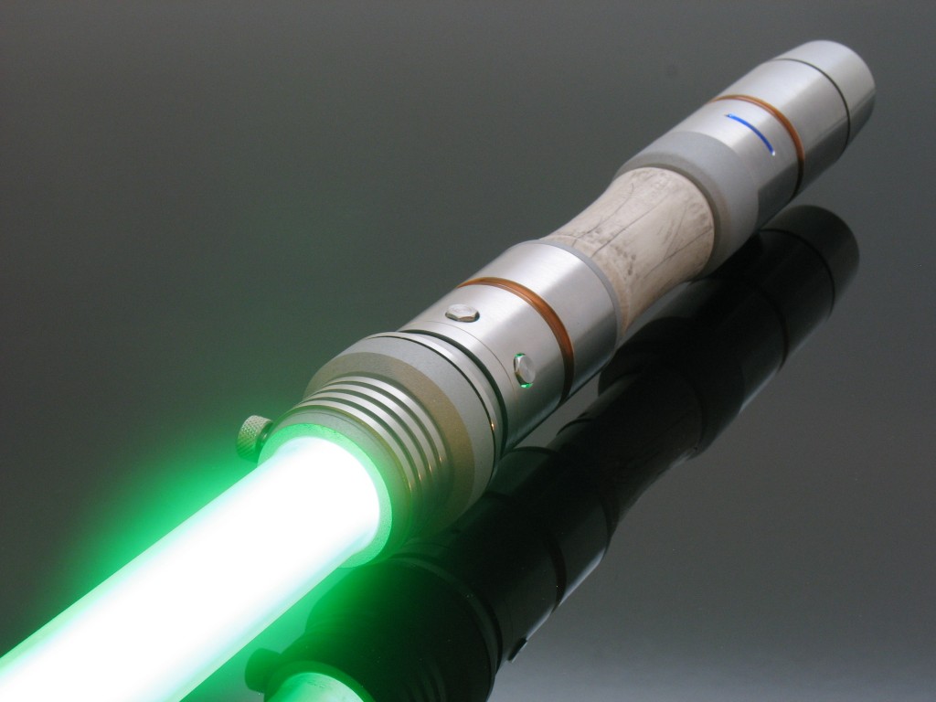 This is the latest evolution of my Krayt Bone ™ technique. It’s an elegant Jedi lightsaber of the Old Republic. I wanted it to appear Prequel era, but distinct from the movie sabers.